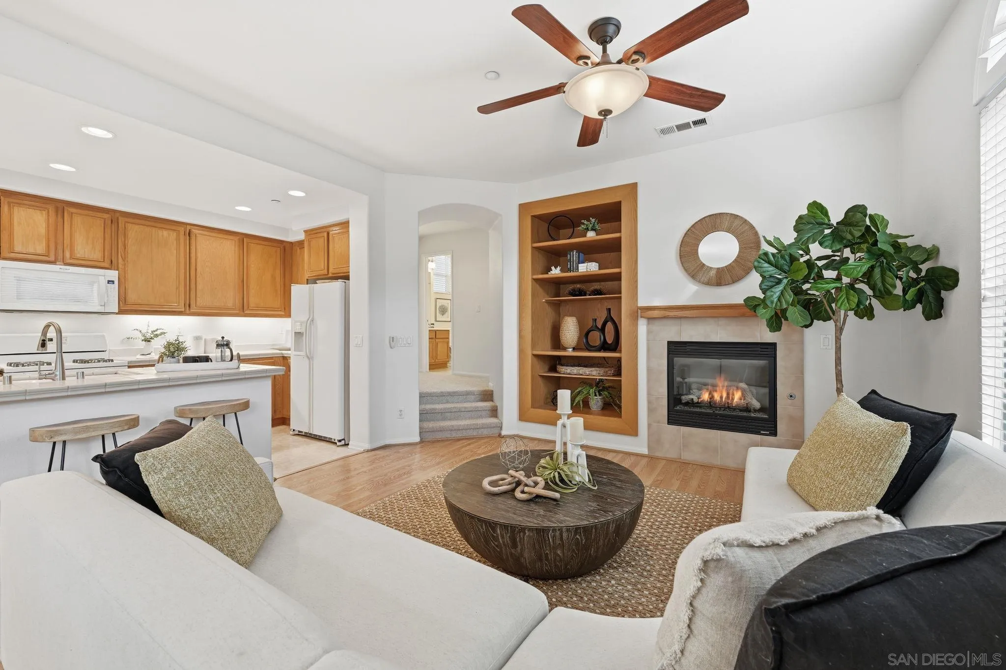 Tucked within the gated community of Bridges at Escala, this home offers both privacy and convenience--just minutes from beaches, shopping, dining, downtown, freeways, and Snapdragon Stadium. The well-designed layout features an open-concept main level with an island kitchen, dining area, and living room filled with natural light. One bedroom and full bath are located on the second level, while two ensuite bedrooms occupy the third--providing flexibility and privacy for guests or family. Recent updates include new carpet, fresh interior paint. The home also includes laminate flooring on main level, a two-car attached garage and a prime location set back from traffic and surrounded by trees for a tranquil feel. Residents enjoy Escala's resort-style amenities with pools, spa, clubhouse, fitness center, and tennis courts.